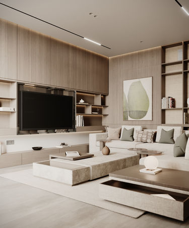 Step into Echoes of Sedra Living, a distinctive residence within the vibrant ROSHN Sedra community, designed as a true sanctuary for a young family. This project masterfully blends modern cozy aesthetics with the calming presence of natural material elements and earthy tones, crafting an environment where every moment is imbued with peace and warmth.